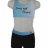 Die Hotpant ist in der Farbkombination schwarz Lycra hellblau abgebildet.