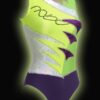 Der Turnanzug Shining Diamond ist in der Farbkombination lila/gelb/weiß abgebildet.